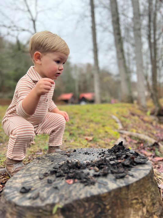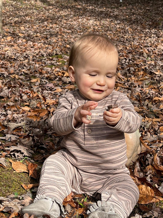 Ribbed Romper - Brown/Cream Stripe