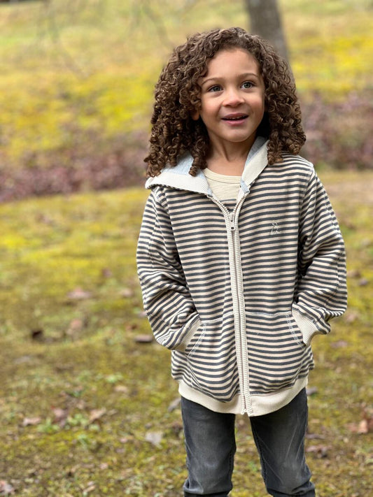 Striped Zip-Up Hoodie - Brown/Cream