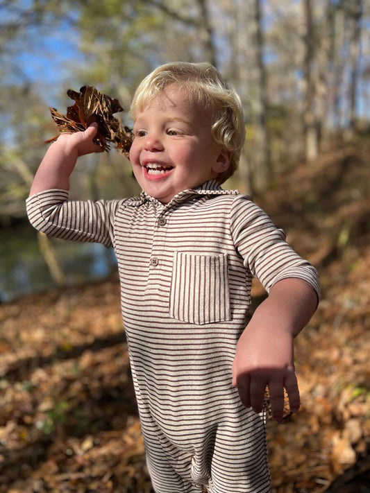 Polo Romper - Brown/Beige Stripe